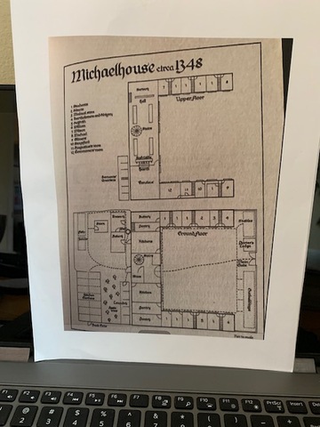 I'm diving into another draft of my novel set in 1351 and I thought I would share with you the building that I'm using as a model. This is a schematic entitled Michaelhouse circuit 1348[i] , "a college for scholars in Holy Orders" that existed between 1323 and 1546 and has now been incorporated into the College at Cambridge. Despite it being a college, it has features that can be found in many medieval manors.
